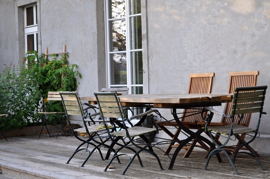 Von der großen Terrasse aus schaut man auf die Alpakas.